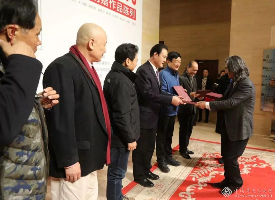 中国美术馆馆长吴为山向捐赠作品的摄影家颁发收藏证书