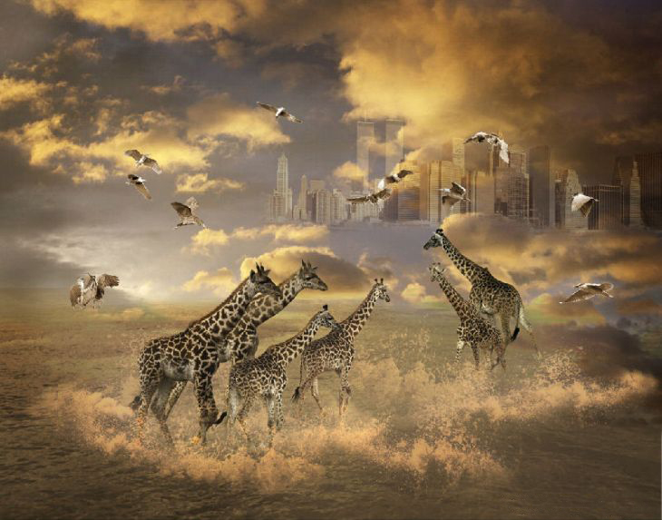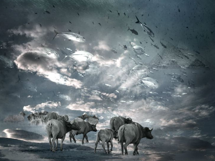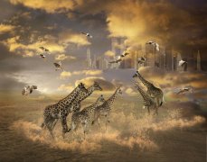 傅文俊的观念摄影作品《图腾》系列取材自非洲,分别拍摄于2008、2010和2011年。采取素材后,艺术家将作品以多幅图像拼贴组合的方式进行后期处理,使其具有超越现实的意味,极具视觉张力。而输出之后的大画幅现场展示更是气势浩大。