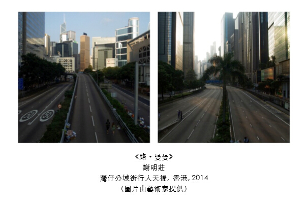 有关香港的街头文化,土耳其裔美国摄影艺术家Akif Hakan Celebi以其浓厚色调、富电影感的街头摄影风格展现九龙区的活力;英籍摄影艺术家Jonathan van Smit以黑白摄影捕捉九龙街头的禁忌,呈现大都会背后黑暗及阴沉的一面;新加坡籍摄影艺术家Weilun Chong则透过港铁列车和站台之间狭窄的空隙来纪录香港的喧嚣。还有去年的雨伞运动,甄祖伦拍摄抗争者临时搭建的路障,作为本土抗争文化的象徵;谢明庄的《路・曼曼》以抽离的观点,从天桥的两端记录路上雨伞运动的变化。除此以外,刘智聪的《放课后》透过一系列摆拍作品反思教育在现今社会的意义;参展艺术家之中年纪最轻的黄颖琳,透过《后山》呈现其随心按下快门,纪录受自然启发的影像。