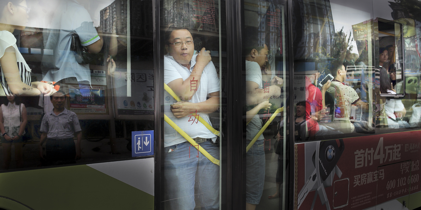 “中国式幸福,从拥有一套房子开始,下一站香汐,幸福即刻启程”一辆从河北燕郊通往北京的公交车载满到北京上班的乘客,距离北京通州只有一河之隔的河北燕郊居住着30多万这样跨省上班族。现实并非广告中描述得那般美好,幸福的背后是漫长路程的煎熬。许多人每天需要花4个多小时在上班路上,却很少有时间享受幸福。高房价与买房限购,使几十万北京上班族选择河北燕郊作为“睡城”。为了能挤上公交车,上班不迟到,他们几乎每天早上五点就得出门,奔波在“朝五晚九”的上下班路上。